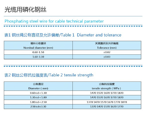 -> Product center -> Phosphated steel wire for optical cable